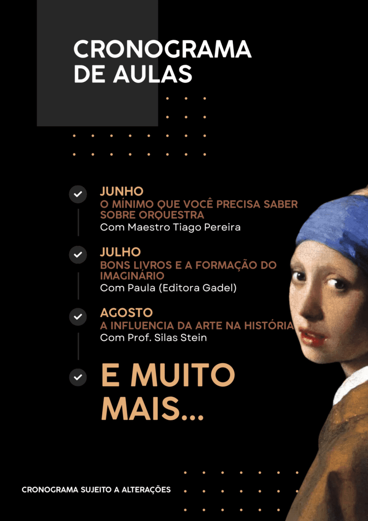Diversos encontros ao longo de 2026, com especialistas nas áreas de artes, literatura e formação clássica.